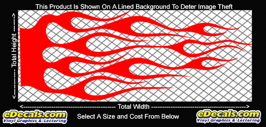 Select a Size/Cost: Use the drop down menu to select a size for your flame decal. You can select to purchase on single flame or a pair of flames. The pairs are mirrored pairs for installation on both sides of your vehicle.