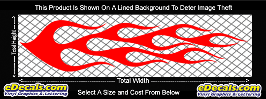 Select a Size/Cost: Use the drop down menu to select a size for your flame decal. You can select to purchase on single flame or a pair of flames. The pairs are mirrored pairs for installation on both sides of your vehicle.