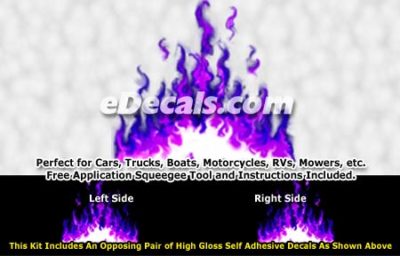 These custom designed realistic flame decals are available as mirrored pairs only. They can be installed on any smooth surface including cars, trucks, boats, motorcycles, helmets, skateboards, etc. Sizes shown are approximate. Measure your vehicle before ordering. Flame designs are shown on a colored background. Actual decal may have a slight black border and color may differ slightly from the image shown.