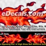 Select a Size/Cost: Use the drop down menu to select a size for your pair of flame decals. The pairs are mirrored pairs for installation on both sides of your vehicle. If you need a custom size, email us for a custom quote.