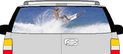 VISION-VIEW REAR WINDOW MURAL DECAL - This revolutionary perforated self adhesive window film is manufactured with thousands of tiny holes that allows you to see out of the window, but allows light to pass into the vehicle. Made for outside installation with dry application. Can be installed on most rear windows including those with sliders and rear wipers. Please note that rain, condensation and snow may reduce visibility when wet.